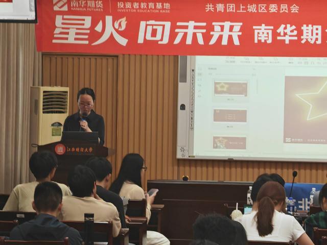 随后,南华期货周婷婷经理对星火计划第二期进行详细介绍。该计划是南华期货针对高校学子推出的一项人才培养计划,旨在通过系统的培训和实战演练,提升学子们的金融理论知识和实践能力,为同学们未来的职业发展打下坚实的基础。此次宣讲活动重点介绍了计划的课程设置、实践环节以及未来的职业发展路径,引起了学子们的浓厚兴趣。